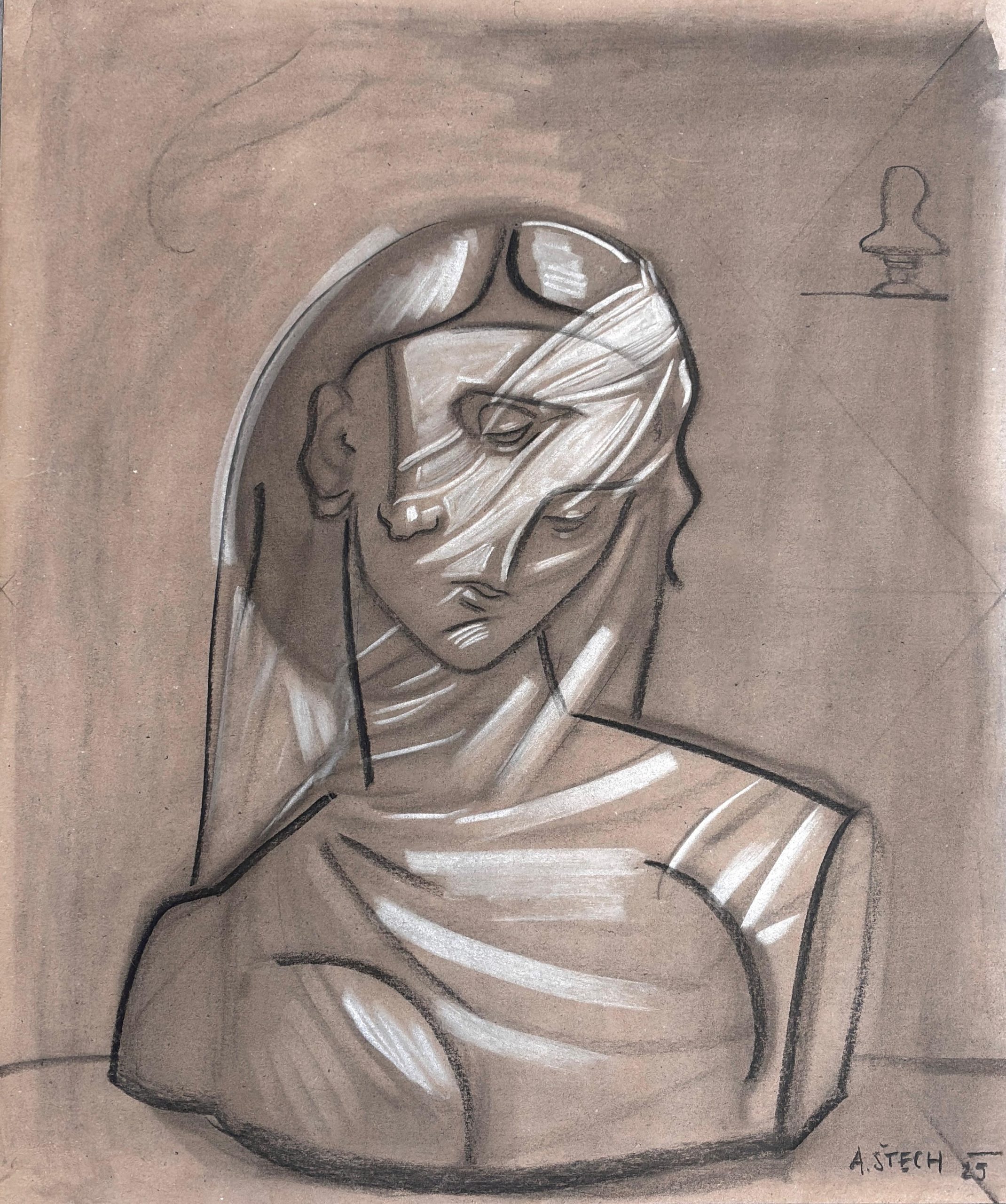 uhel a pastel na papíře / charcoal and pastel on paper / 82 x 70 cm